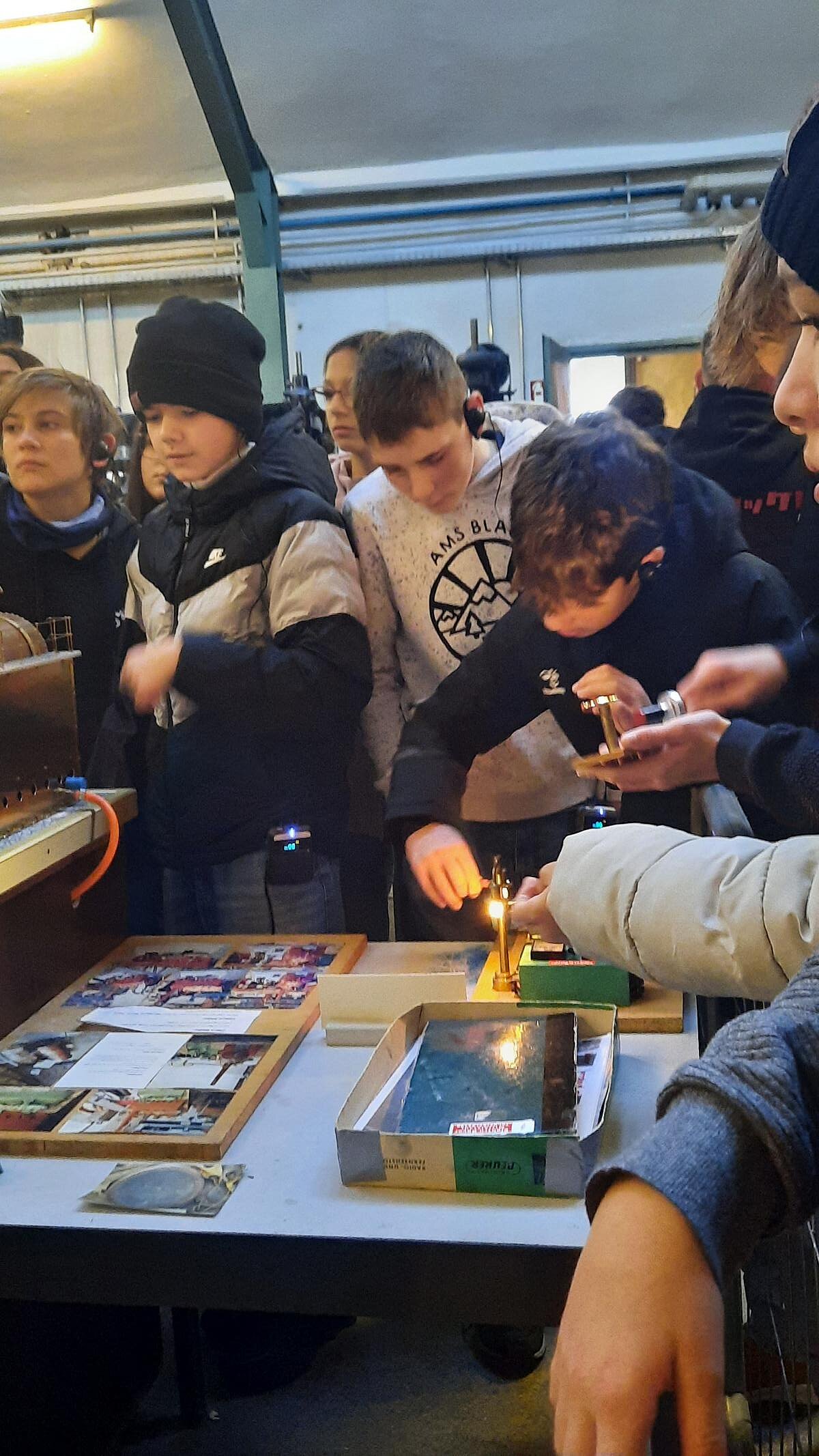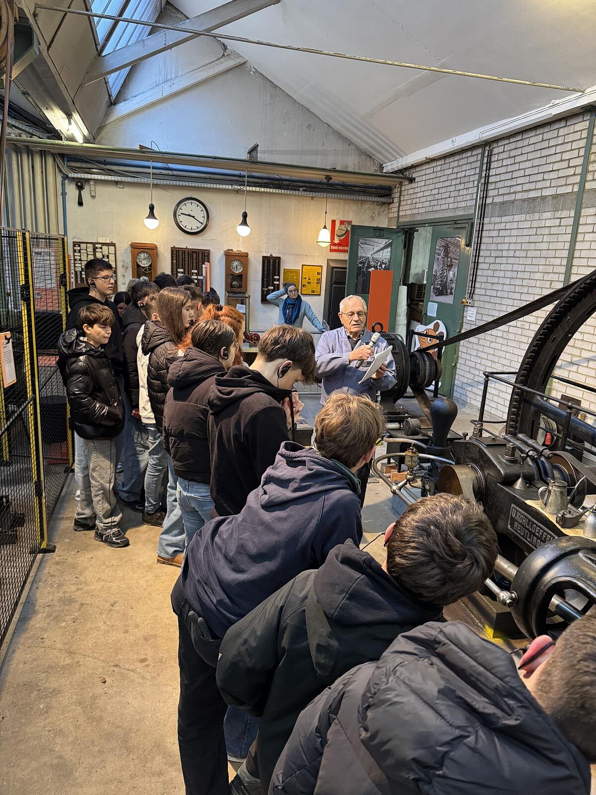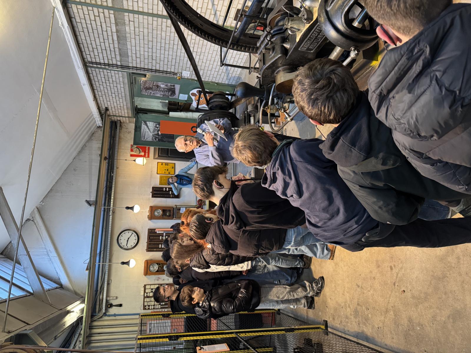Ein Highlight des Besuchs war die beeindruckende Vorführung einer echten Dampfmaschine. Die Schüler hatten die Möglichkeit, die Maschine in voller Aktion zu sehen und zu erfahren, wie sie funktioniert. Auch die Kraftübertragung, mithilfe von Wellen und Riemen wurde am Beispiel von historischen metallverarbeitenden Maschinen eindrucksvoll gezeigt.