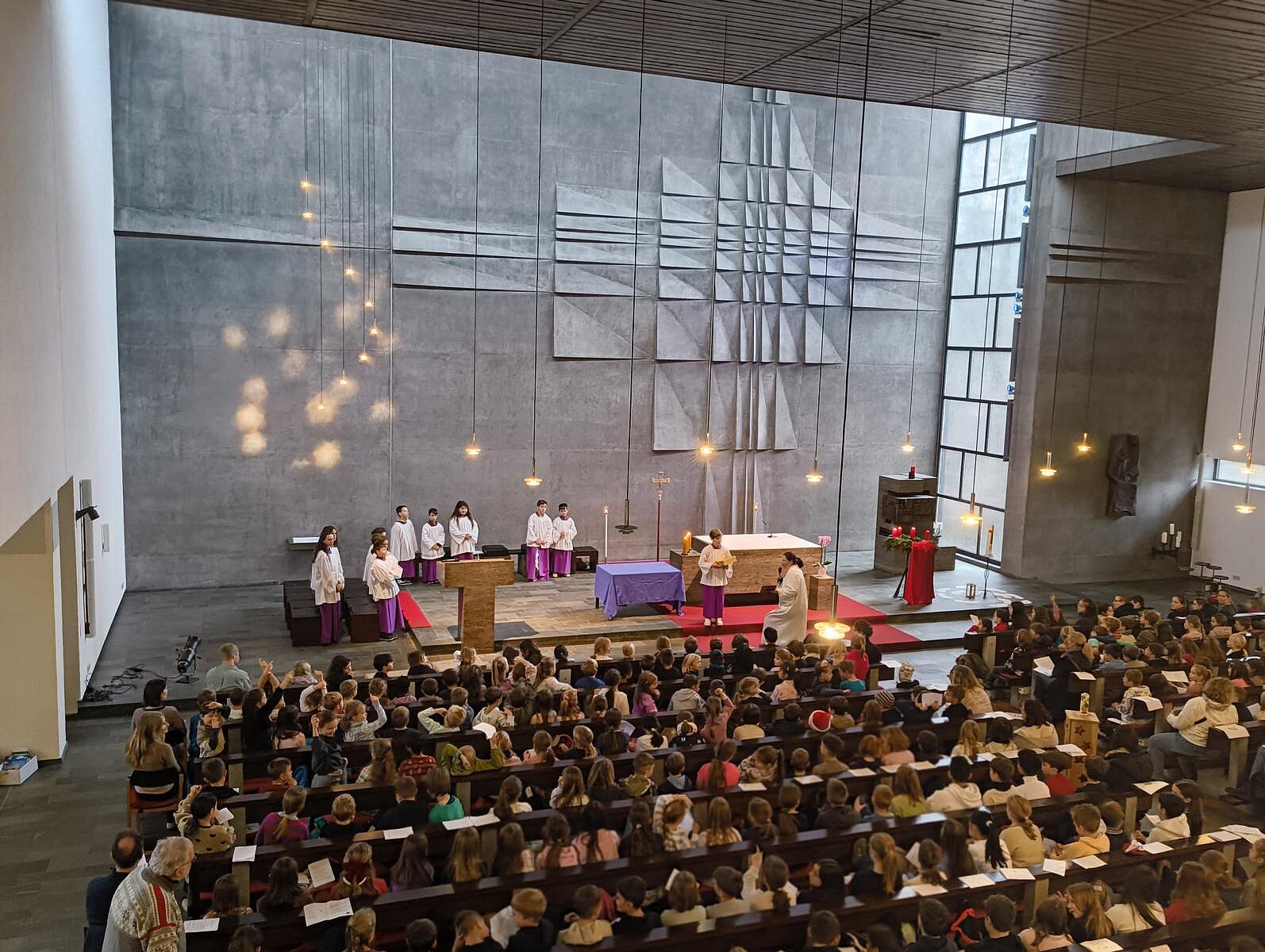 Am letzten Schultag vor den Weihnachtsferien feierten wir in der Heilig Geist Kirche unseren festlichen Weihnachtsgottesdienst. Unter dem Thema „In die Welt ein Licht tragen“ versammelten sich alle Schülerinnen und Schüler der Klassen 1 bis 10 sowie Lehrerinnen, Lehrer und Mitarbeiter, um gemeinsam diesen besonderen Anlass zu feiern.