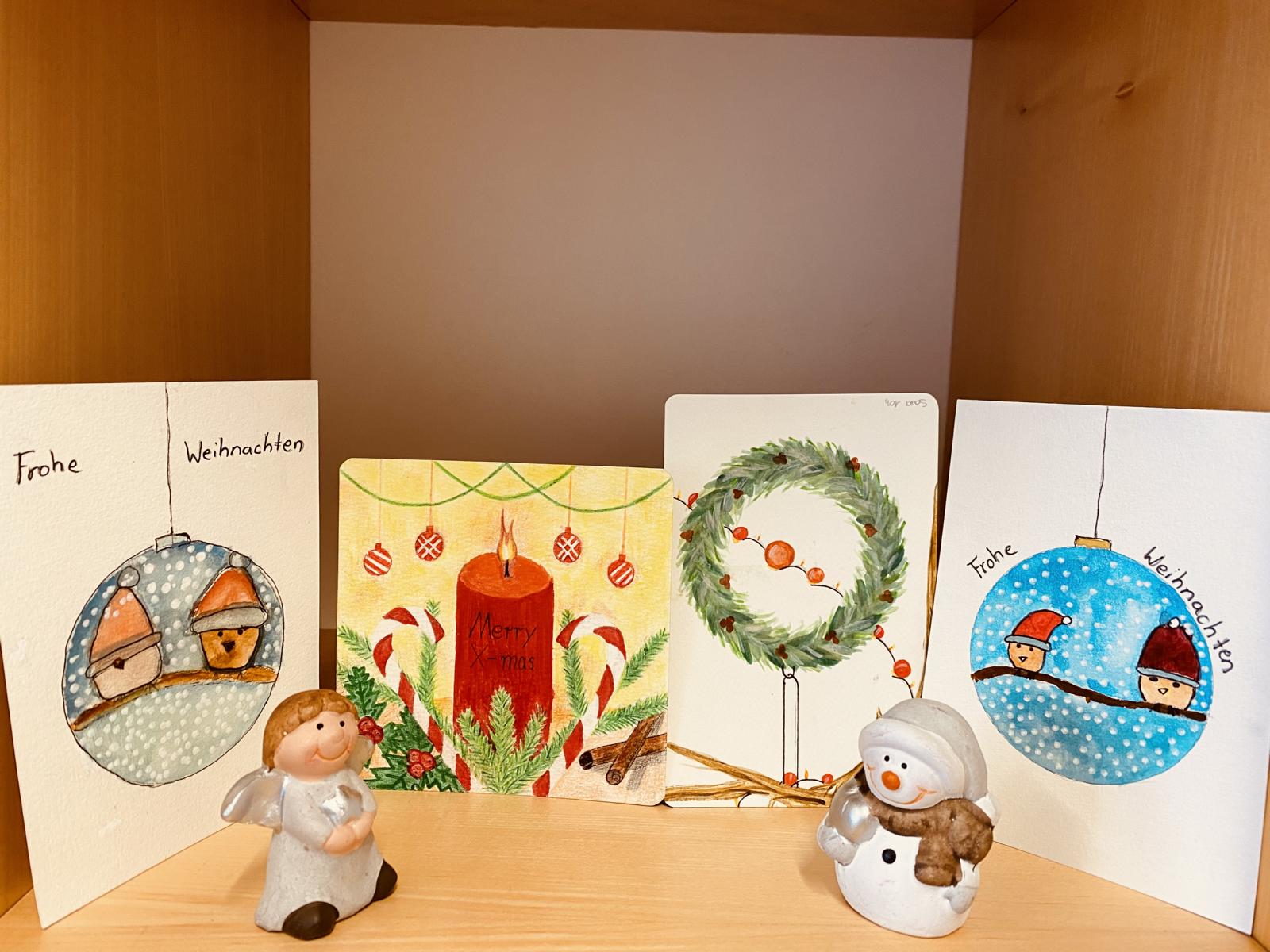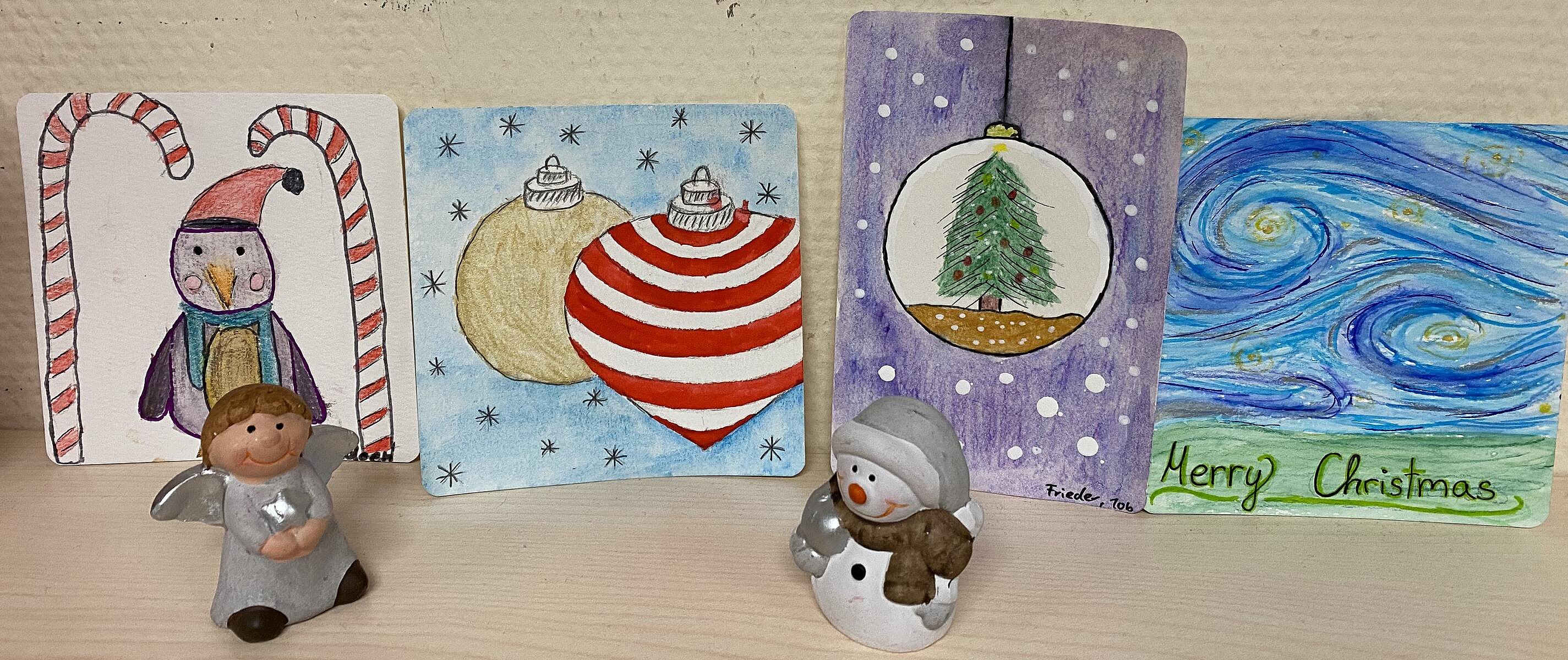 Im Kunstunterricht haben die Schülerinnen und Schüler der Klassen 3b, 8b, 9a, 9b und 10b mit viel Kreativität und Freude Weihnachtskarten gestaltet. In diesem Projekt konnten die Kinder ihre Fantasie entfalten, ihre künstlerischen Fähigkeiten weiterentwickeln und die festliche Stimmung der Weihnachtszeit zum Ausdruck bringen.