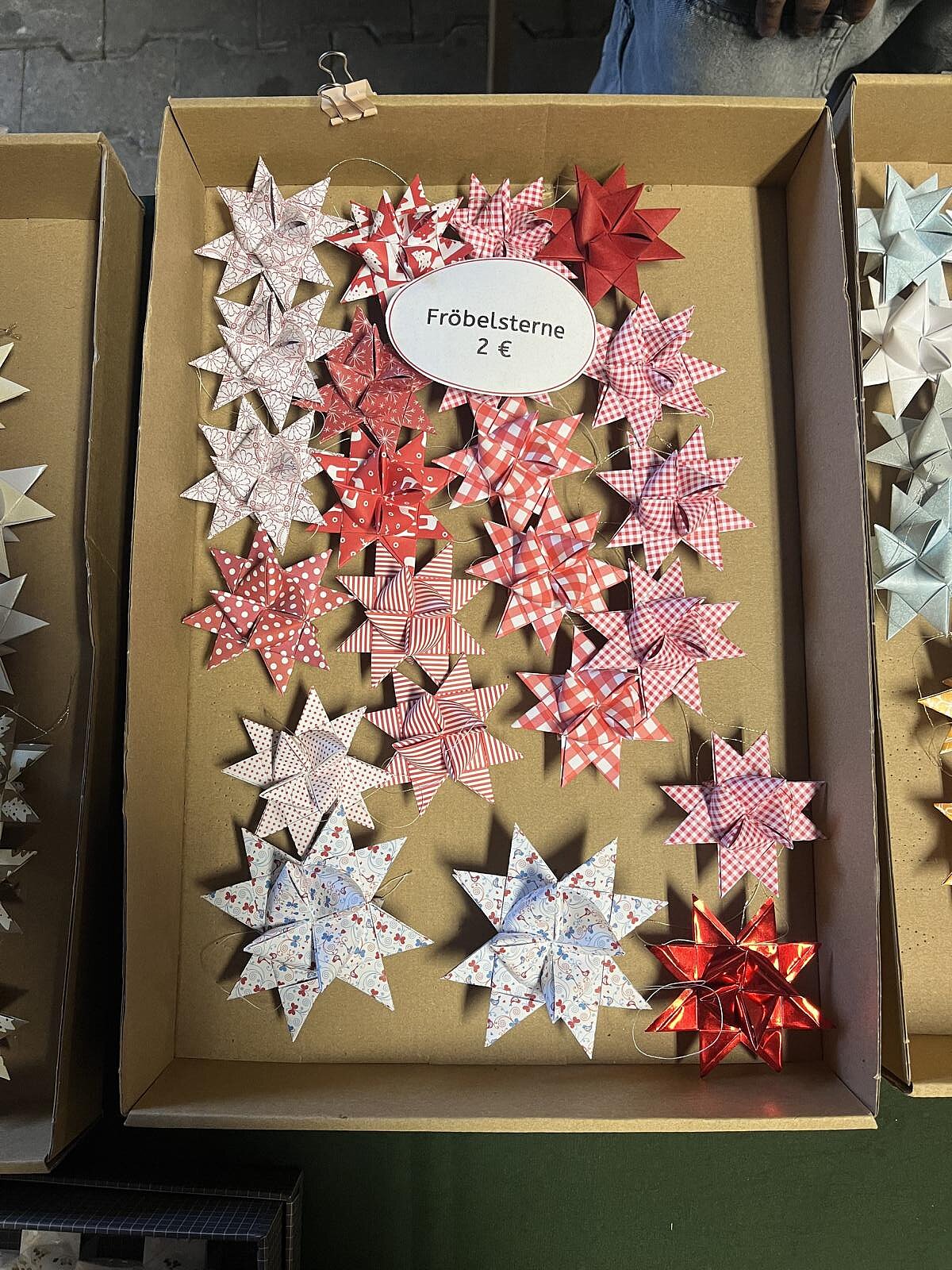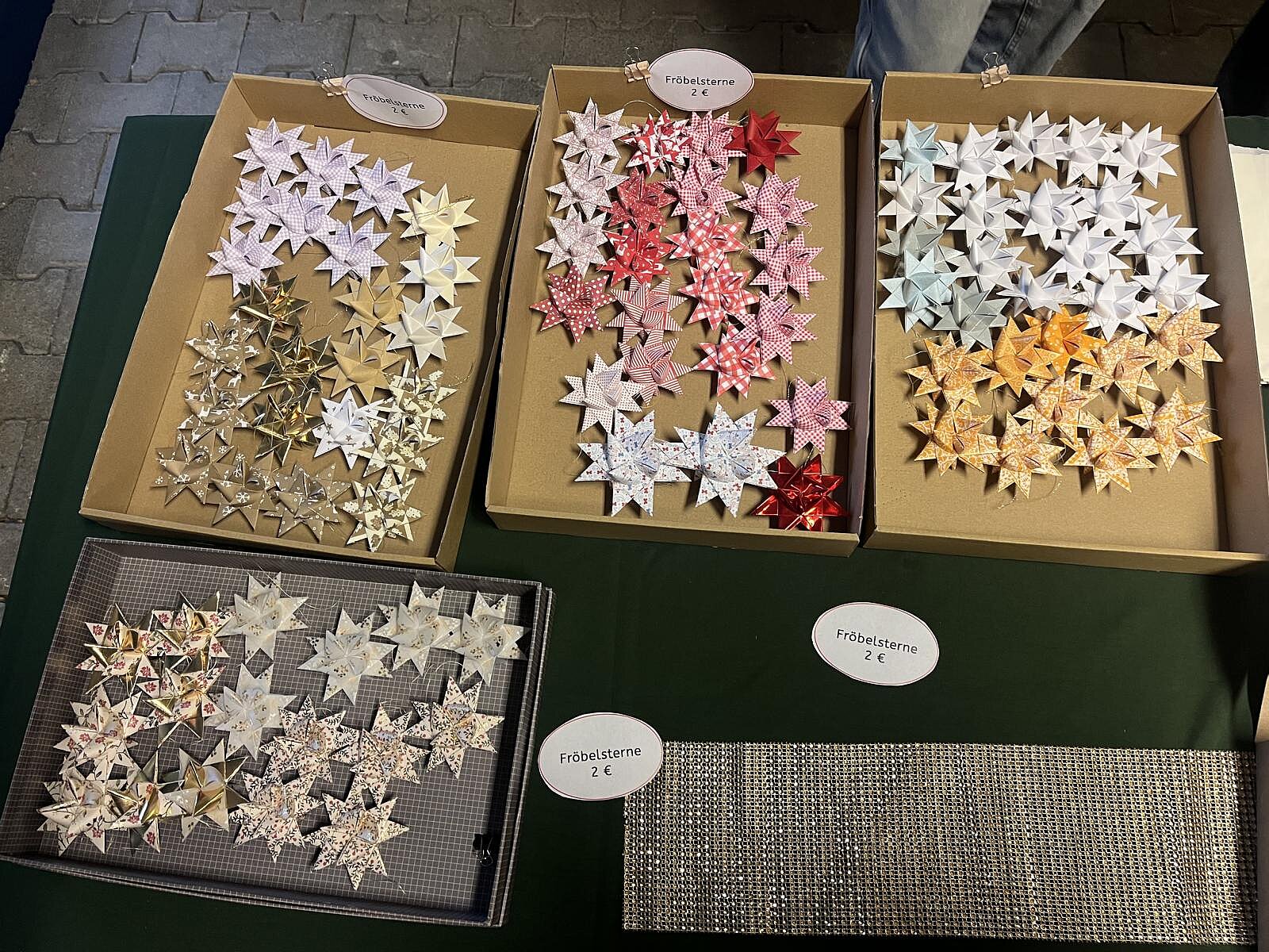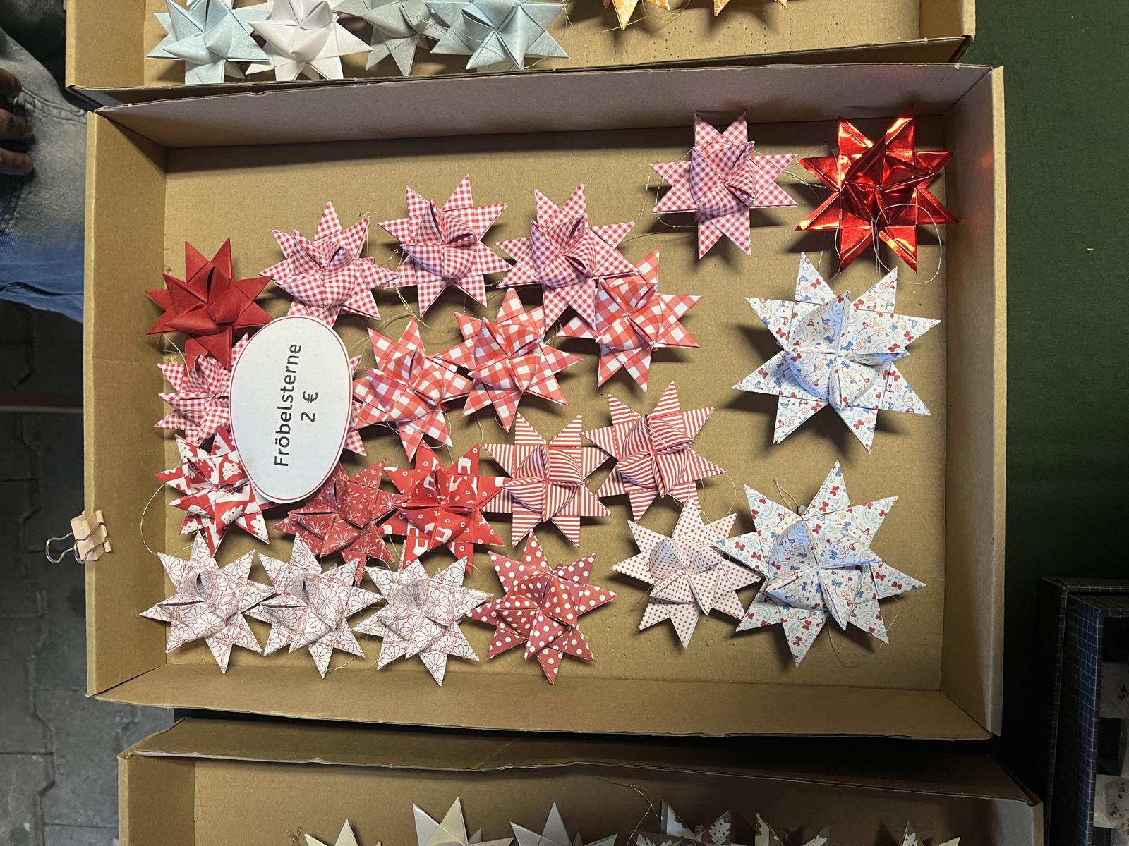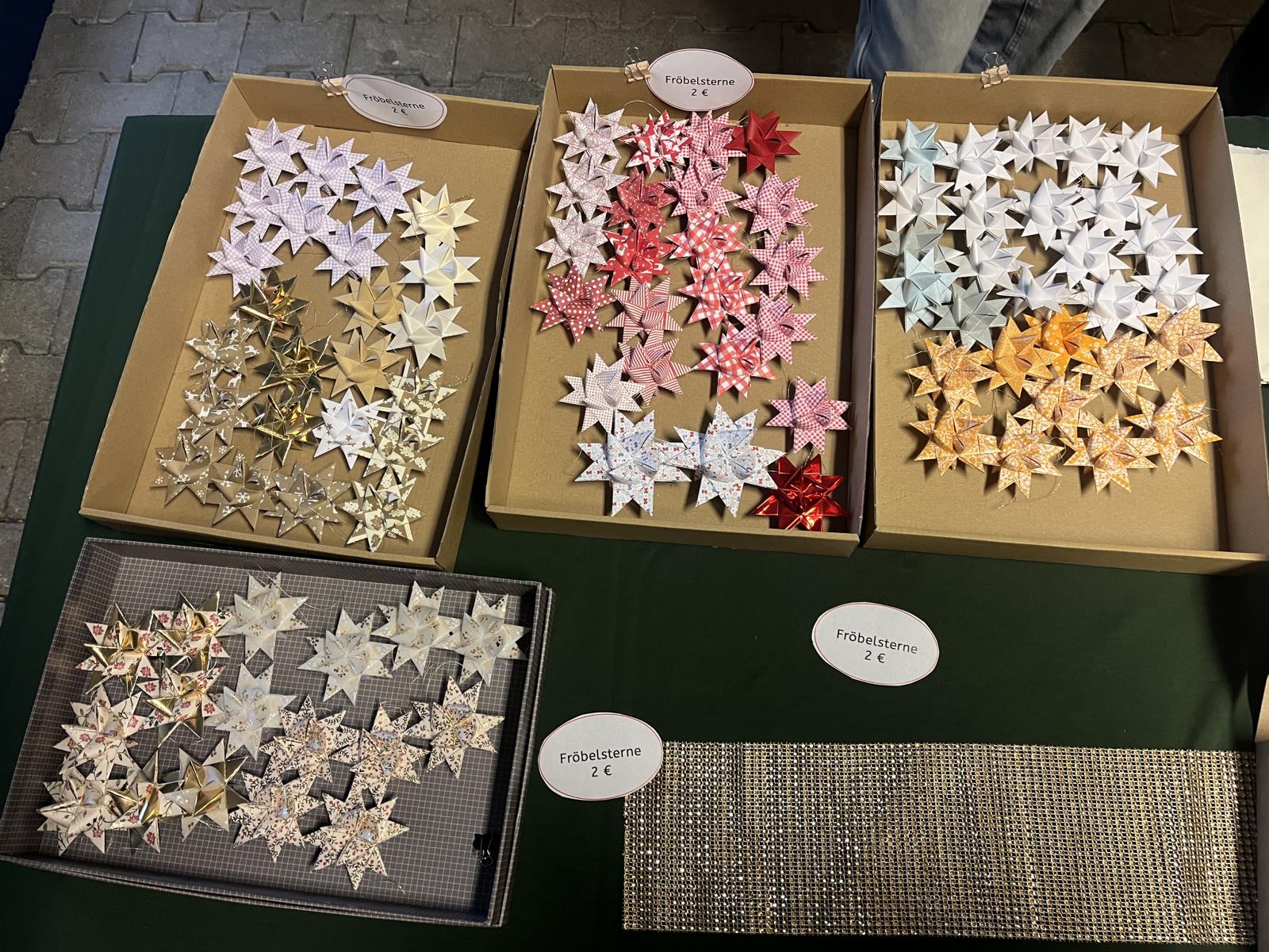 Für die Aktion Sternenfunkeln stellte Frau Schick selbstgebastelte Sterne her – darunter als Besonderheit die Teebeutelsterne. Der gesamte Erlös aus diesem Stand geht direkt an die Aktion Sternenfunkeln.