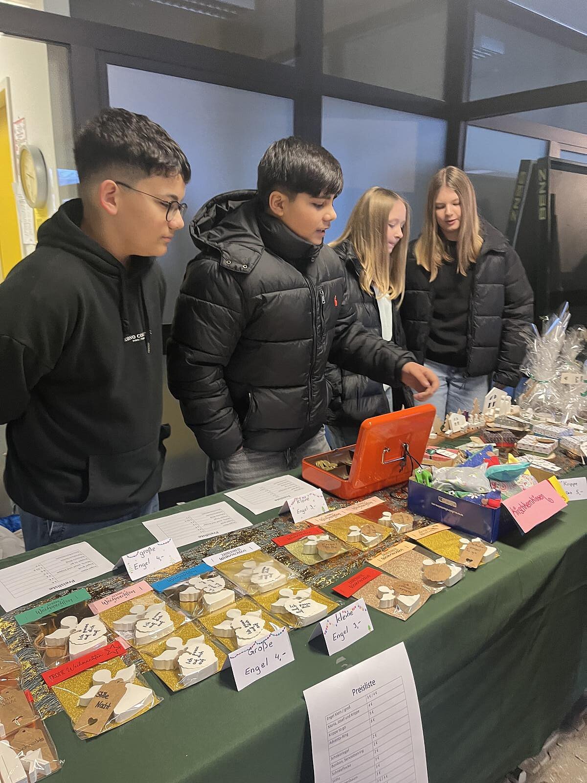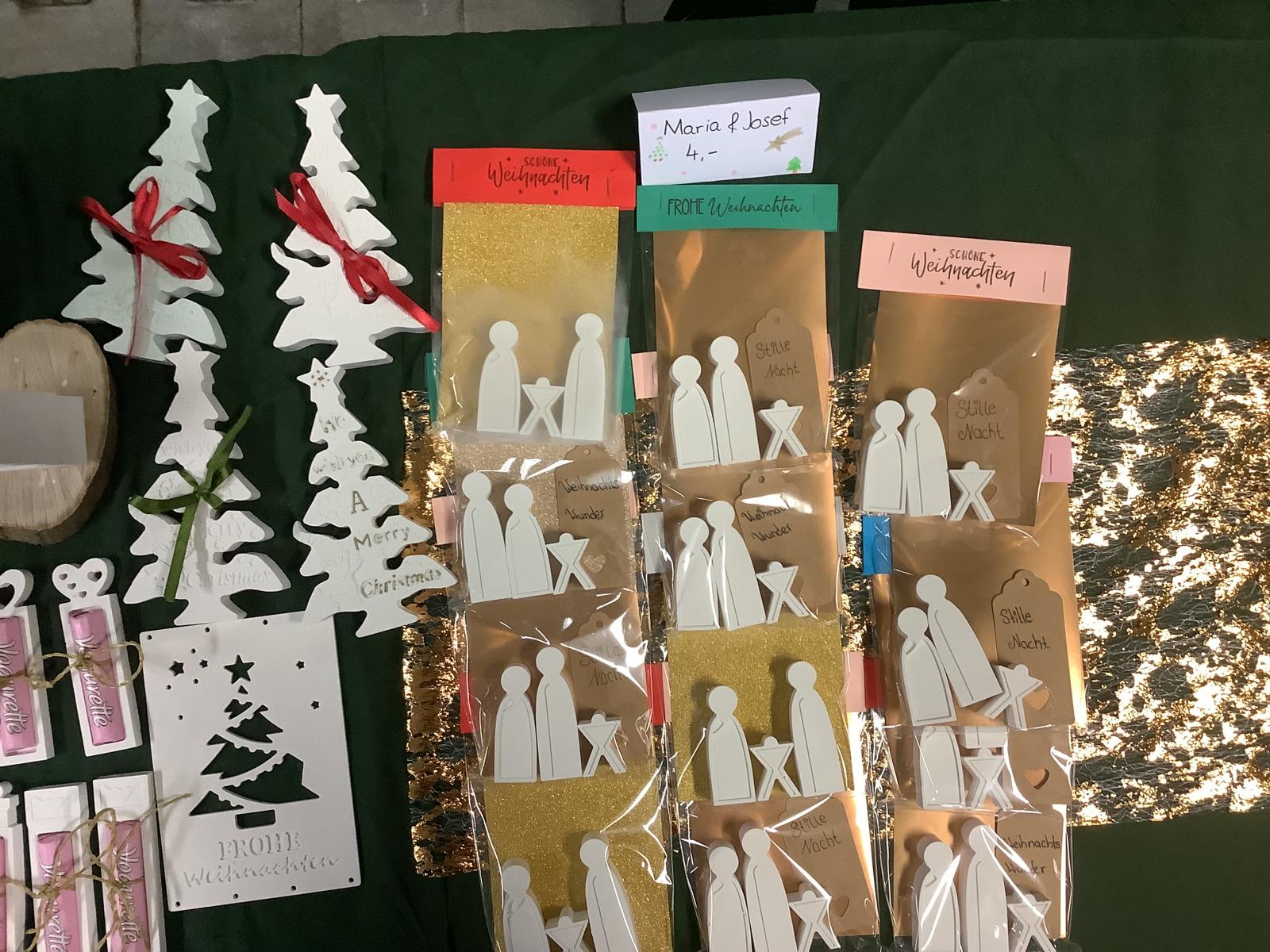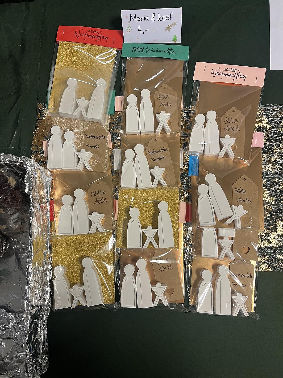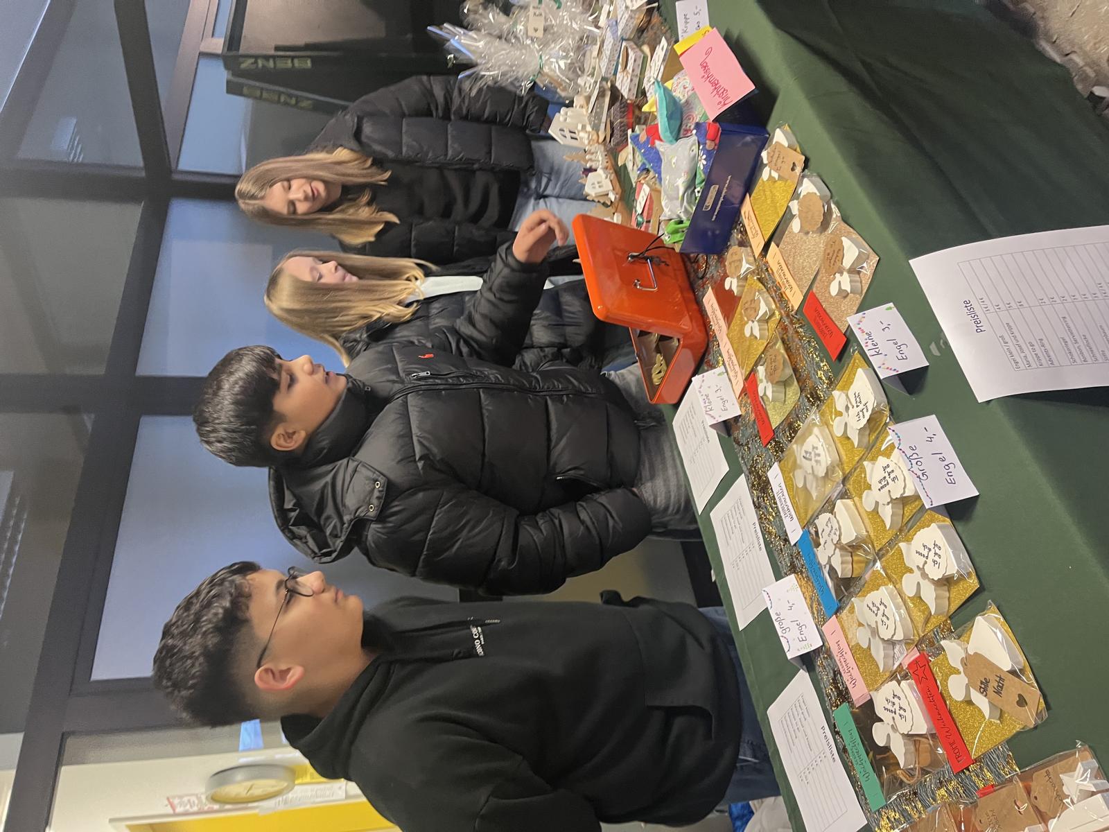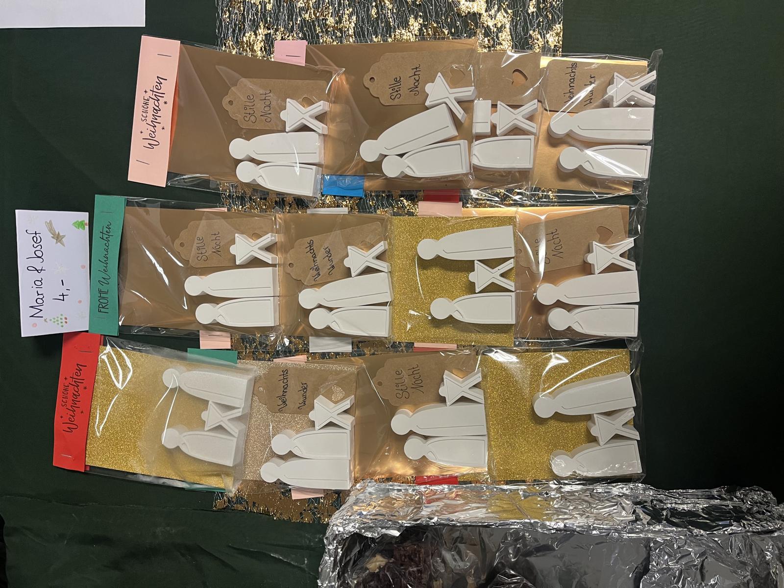 Von Juni bis Dezember haben die Klassen 7ab an kleinen und großen Weihnachtswundern für den Weihnachtsbazar der Sankt-Wolfgang-Schule gearbeitet. Jede Schülerin und jeder Schüler brachte sich nach den eigenen Fähigkeiten ein: beim Basteln, Gießen, Nähen, Verpacken, beim Herstellen von Choco Crossies oder in der Organisation durch Werbung, Preislisten und Kassenführung.