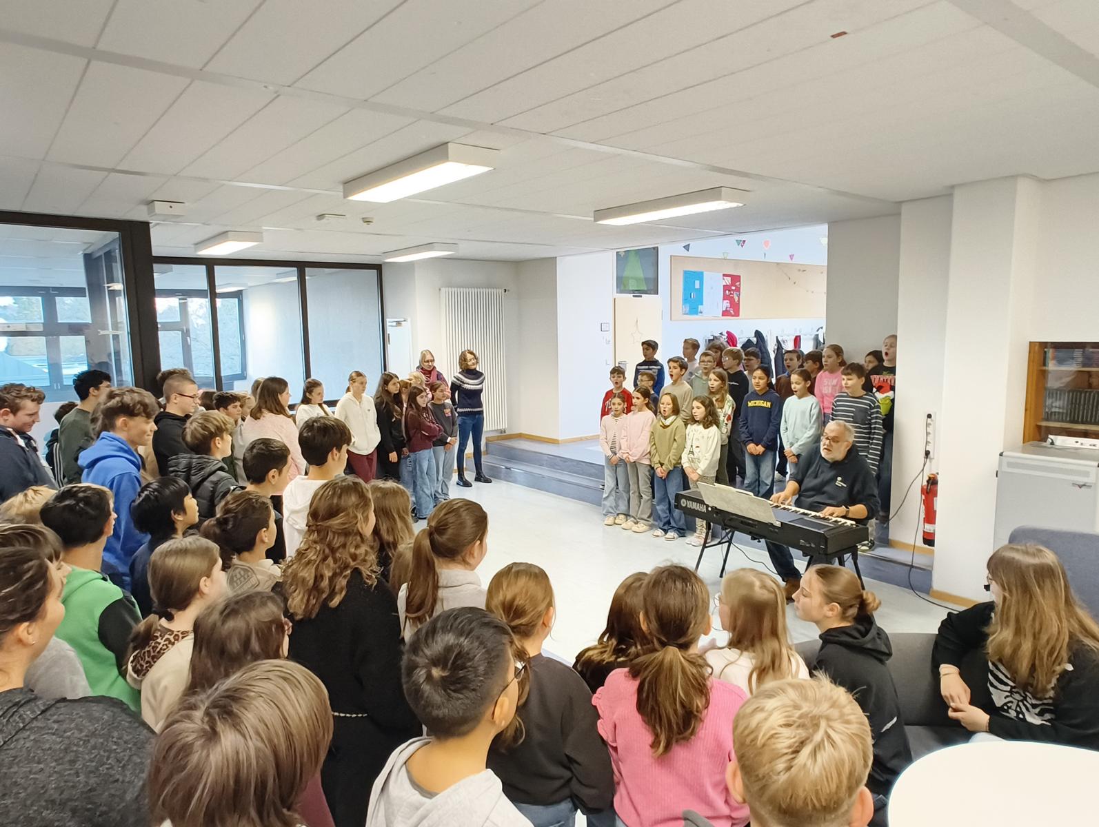 Der Gottesdienst wurde musikalisch von allen Chören der Schule sowie einer Schüler-Lehrer-Band umrahmt.