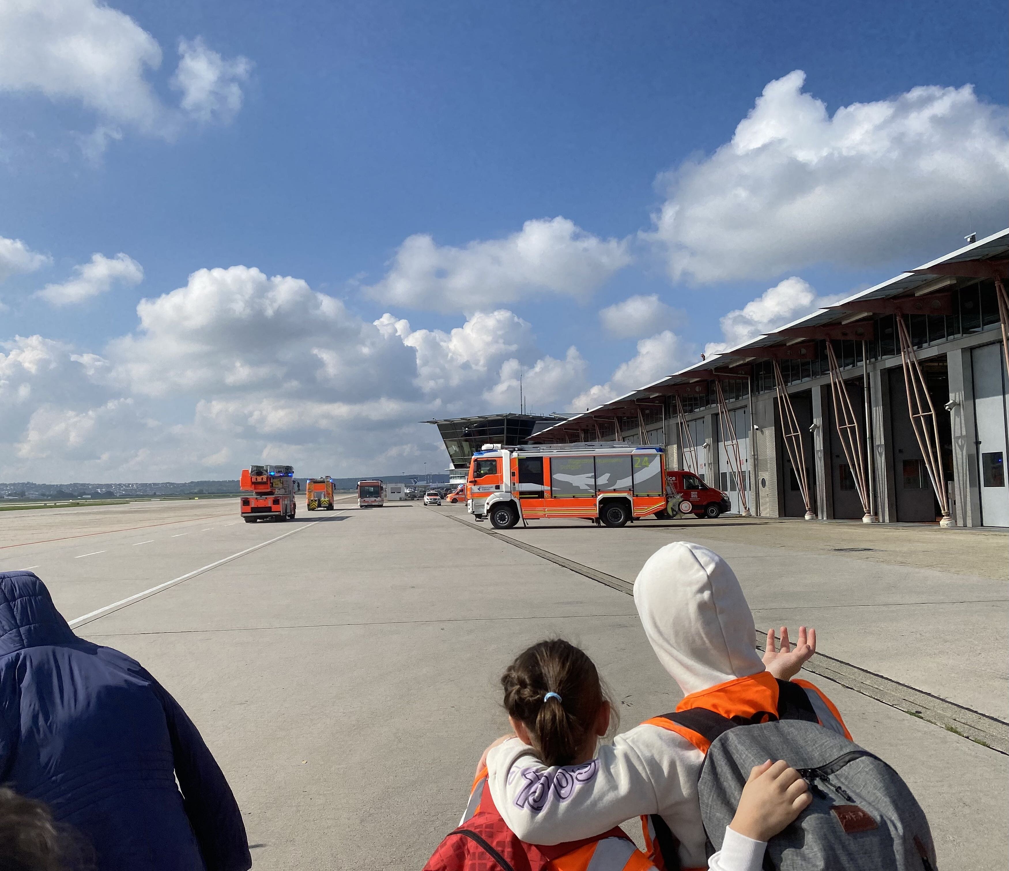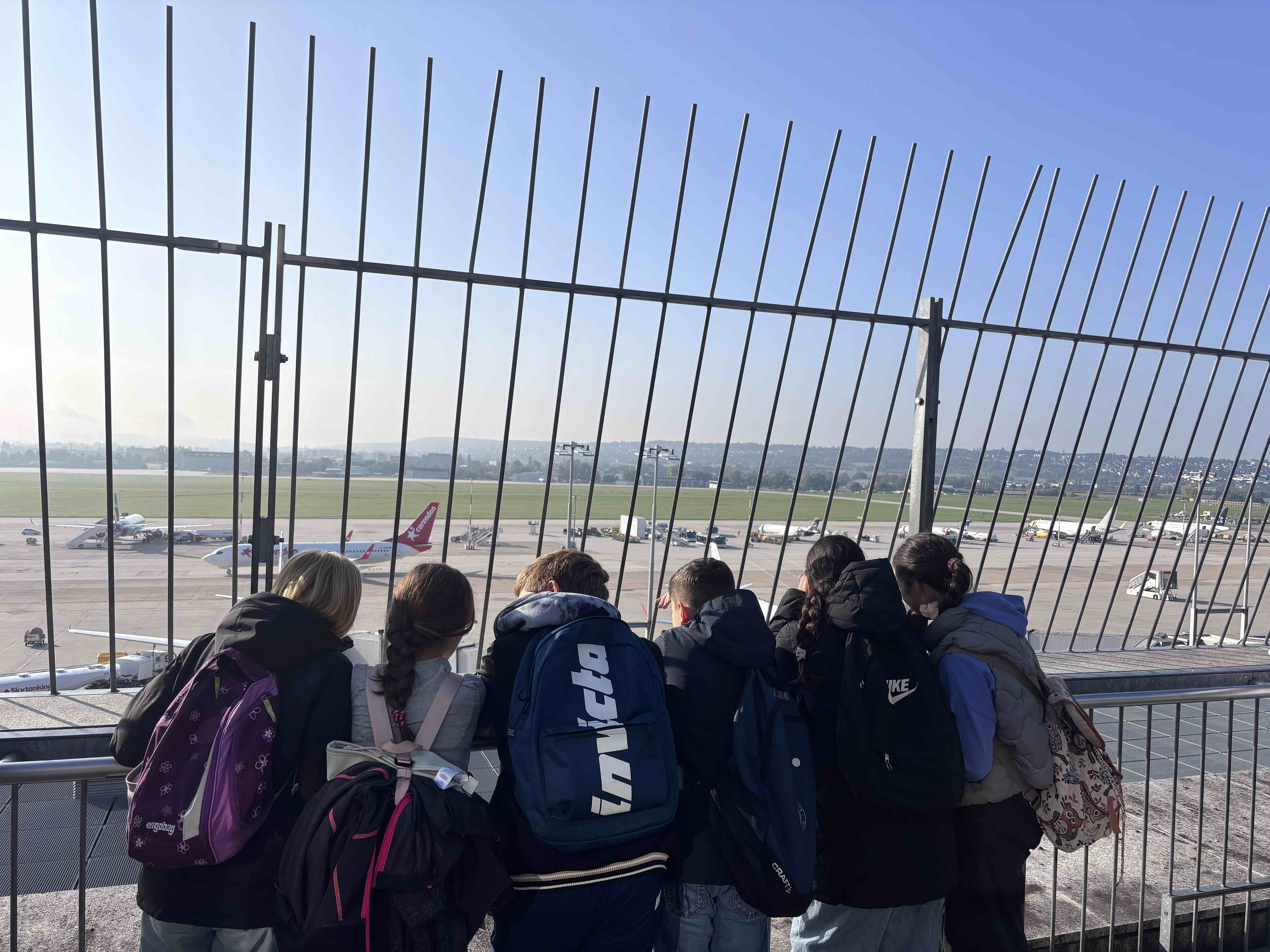 Am Montag, den 29.09.2025 machten die Klassen 6a und 6b einen Ausflug zum Stuttgarter Flughafen. Wir fuhren mit dem Zug bzw. Bus zum Flughafen. Nach der Frühstückspause in Terminal 3 nahmen wir an einer Führung durch den Flughafen teil. Zuerst bekamen wir anhand eines Films Informationen zum Flughafen. Danach erhielt jeder von uns eine orangene Besucherweste, mit der wir in verschiedene Bereiche durften, die Fluggäste während des Aufenthalts am Flughafen nicht sehen. Bevor wir in den Bus stiegen, mussten wir durch die Sicherheitskontrollen. Der Bus fuhr mit uns an Flugzeugen vorbei, sodass wir sehen konnten, wie diese beladen, getankt und die Koffer eingeladen wurden. Außerdem hatten wir einen Blick auf die drei großen Kerosintanks und die Start- und Landebahn. Ein weiteres Highlight war der Besuch der Flughafenfeuerwehr. Dort konnten wir uns die großen Löschfahrzeuge, auch Panther genannt, anschauen. Zum Abschluss haben wir uns noch die Gepäckabfertigung angeschaut. Danach gingen wir auf die Besucherterrasse des Flughafens und beobachteten Flugzeuge beim Starten und Landen. Außerdem durften wir einen Abstecher zu McDonalds machen. Anschließend ging es dann wieder zurück nach Reutlingen. Das war ein toller und interessanter Ausflug.